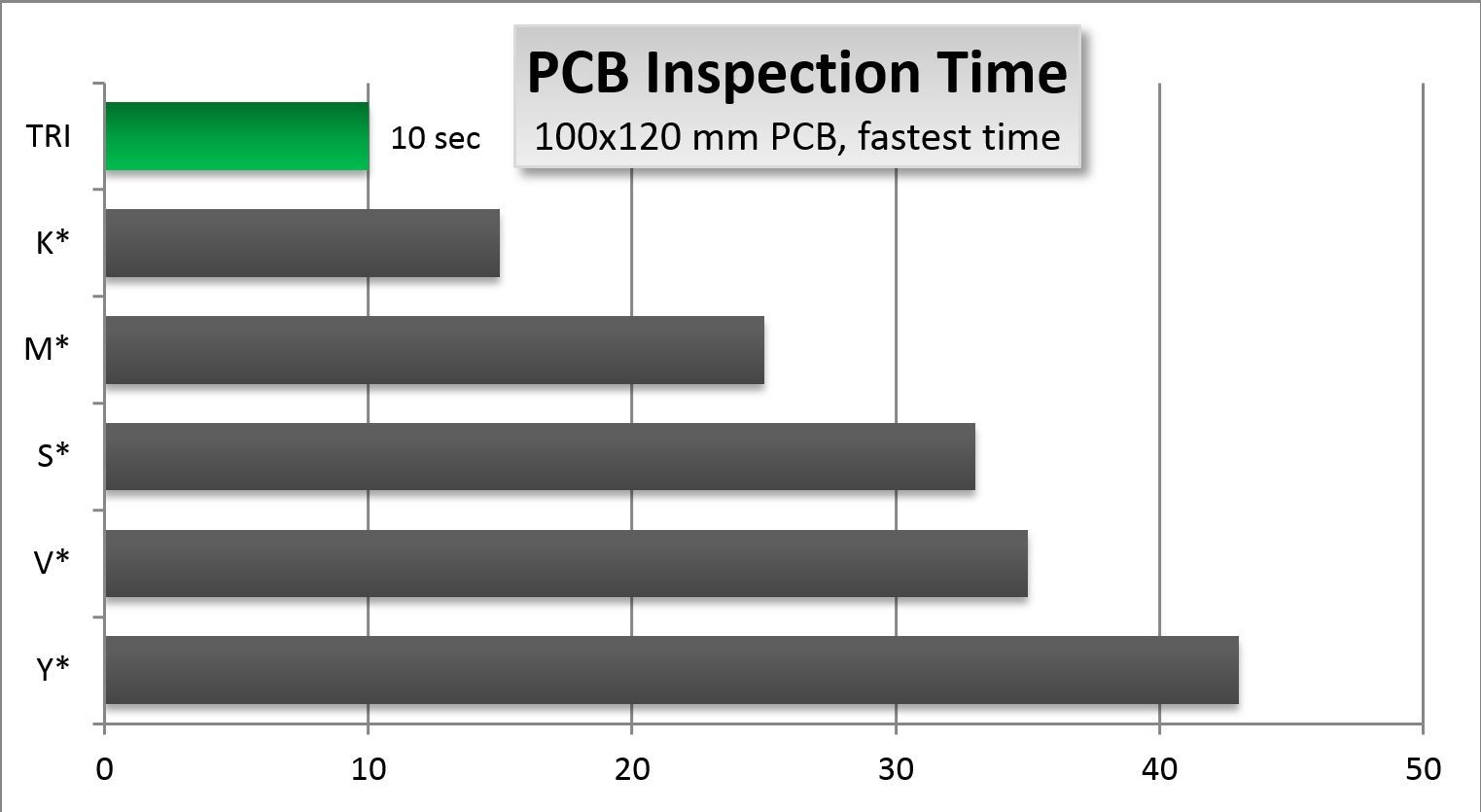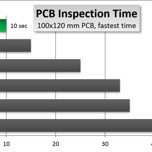 - Inspektion aller Bauteile bei voller Geschwindigkeit (vom Standard-SMT-Bauteil bis zu großen Kondensatoren, Schaltern, Steckerleisten und versteckten Anschlüssen)